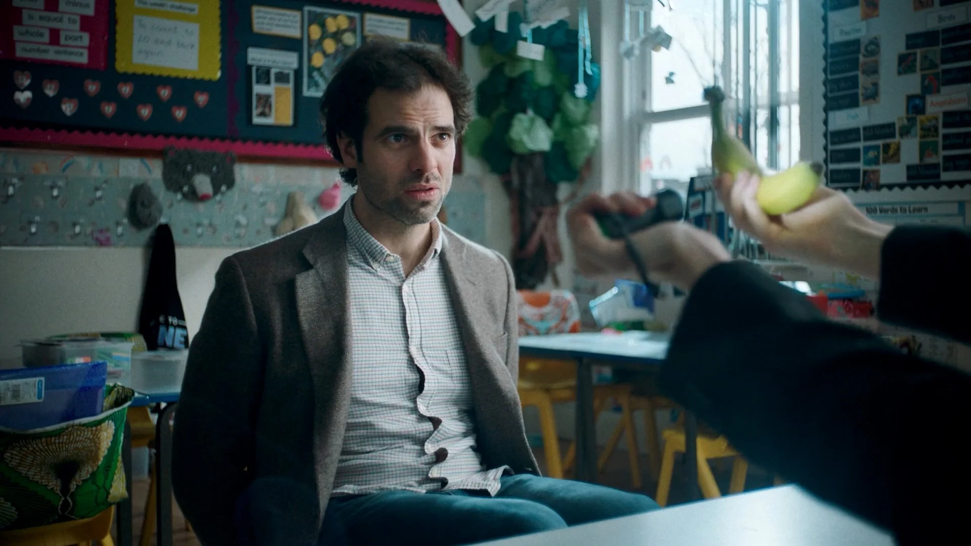 Story to include someone eating (or otherwise using) bananas, nuts, or crackers.